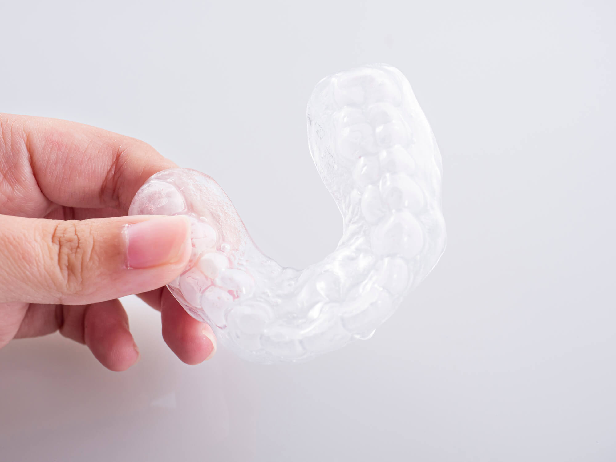スプリントは夜間のみの使用で問題ありませんが、痛みがある方は日中も装着することで顎の筋肉の緊張緩和と、噛み合わせを改善させる狙いがあります。
