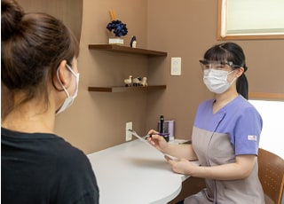 診療台ではなかなかお気持ちを伝えにくい人も多く、場所を変えることで話しやすくなることもあると考え、当院は患者さまのプライバシーに配慮したカウンセリングルームを用意しております。