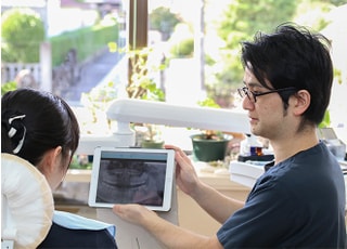 患者さまが治療内容やお口の状況を把握できていないままでは、ご納得いただける処置を提供することは難しいでしょう。そこで当院は、タブレット端末を用いて画像をお見せするなど、視覚的な情報も含めた分かりやすいご説明を行うよう心がけています。また、できるだけ専門用語を使わずに、鏡や模型なども用いながらお話を進めていきます。