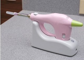 麻酔注射の際には、前もって歯茎に表面麻酔を施しているので、注射針が刺さる時の痛みを軽減させることが可能です。しっかりと表面麻酔が効いた後は、一定の圧力で麻酔液を注入できる電動麻酔器を用いて、なるべく刺激を少なくして処置を終えるようにしています。