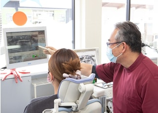 その後、口内の現状を詳細にお伝えした上で、患者さまのご要望を踏まえつつ、治療方法を提案いたします。ご提案の際は、想定される治療期間や費用はもちろん、治療のメリット・デメリットもできるだけ詳しくお話しします。当院は保険診療をメインで行っており、無理に自由診療をおすすめすることはございません。