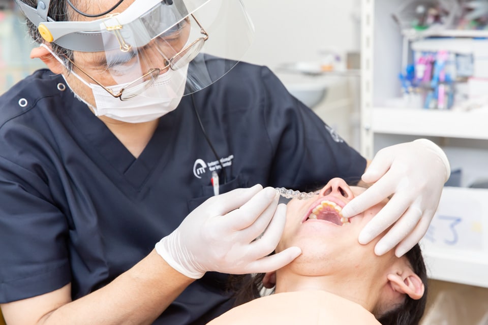 月1回のペースで通院していただきます。最初の数回の通院で様子を見ながら、下顎の矯正装置も装着します。その後は、矯正治療の進行チェックや矯正装置の調整、クリーニングを行います。