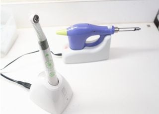 例えば、麻酔を行う前には歯茎に表面麻酔を行って、針が刺さる痛みを軽減しています。また、電動麻酔器で麻酔液の注入スピードを一定にすることで、患者さまが感じる痛みや不快感を可能な限り軽減しています。