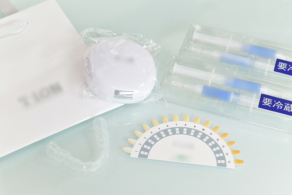 ご自宅でご自身のペースで行え、追加で薬剤を購入して継続できるというメリットもあるため、当院では採用しています。しかし、装着時間を守ること、施術中や直後は着色の強い飲食物を控えることなどのお守りいただきたい事項もあります。