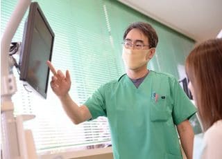 治療前の説明ではレントゲンやお口の中の写真、模型などを使って、視覚的に分かりやすいよう努めています。歯科知識をあまりお持ちでない方にもご理解いただけるように工夫しているので、これまで歯科医院に通う習慣がなかった方にも気軽にいらしていただきたいです。