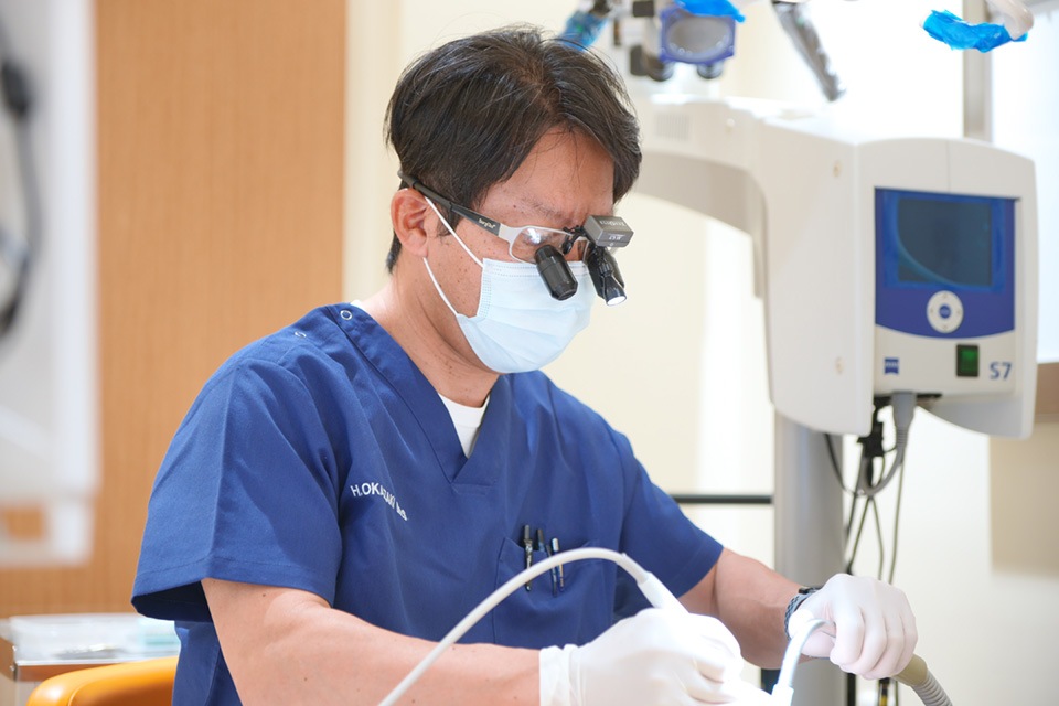 初診時の検査では、歯科用CTやマイクロスコープなどでお口の中をくまなくチェックします。また、模型ではどうしてもひずみや膨張が出てしまう場合があるため、お口の中をスキャンすることで歯の型取りを行ってデジタルデータ化し、噛み合わせなども細かく確認します。そして、取得したデータをもとに治療のシミュレーションを行い、その結果は患者さまにもお見せします。
