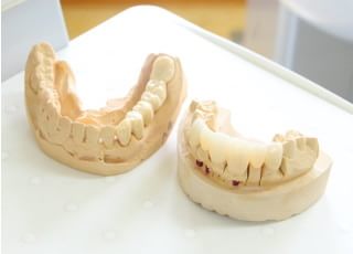 当院では、患者さま一人ひとりのお口に適した技工物を提供できるように、歯科技工士と連携して作製をしています。入れ歯や義歯はお口の中に入るものであるため、素材や質にこだわったものを使用しており、患者さまの健康を害さないように配慮をしています。
