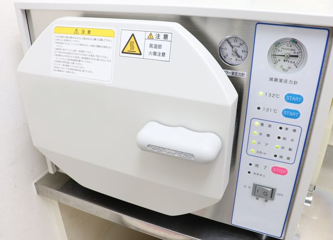 使用する器具は、高圧蒸気滅菌器で滅菌し清潔に保管管理しています。