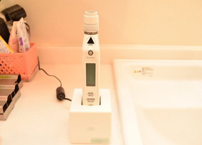 電動麻酔注射器です。これによって麻酔液注入時の痛みを抑えます。