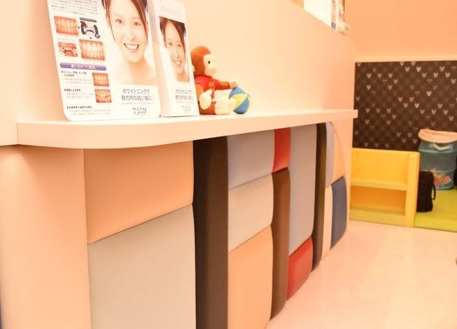 当院の受付です。恐怖や不安をできるだけなくせるよう、明るくていねいな応対を心がけてお待ちしております。