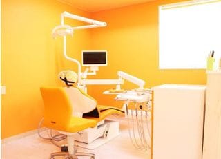 オレンジと黄色を基調とした、明るい雰囲気の歯科医院です