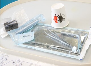 当院は院内感染防止のため、衛生管理に力を入れています。使った器具は全て滅菌し、滅菌パックに入れたまま保管します。パックは治療の直前で開けるので、清潔な器具を使用することが可能です。