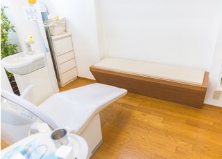 例えば、治療台の横には付き添い用のいすをご用意しました。親御さまの治療の際には、お子さまもご一緒に治療室へとお入りいただき、治療風景を見ていただくことが可能です。また、院内はバリアフリー設計にしながらも木のぬくもりが感じられるデザインにして、キッズスペースもご用意しました。