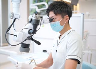また、虫歯治療や根管治療ではマイクロスコープを使用しています。マイクロスコープを使用することで、約20倍まで患部を拡大して見ることができます。肉眼と比べて汚れなどの見落としが減り、歯を余分に削ることも防げるので、患者さまのご負担が少ないといったメリットがあります。