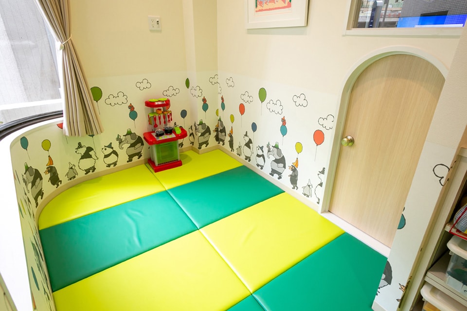 その一環として、お子さまが自由に遊べるキッズスペースを待合室の一角にご用意しました。キッズスペースは個室診療室とつながっているため、遊びの延長線上で治療を受けていただけるのではないでしょうか。そしてキッズスペース内にはカメラを備えていますので、親御さまやご兄弟が診療を受けている最中も、お子さまの状況をご確認いただけます。