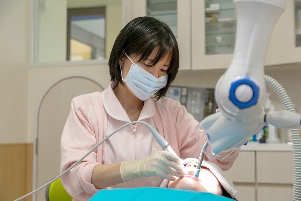 歯科衛生士がクリーニングを行い、患者さまの口内状態を整えていきます。もしも虫歯などがあれば、歯科医師による治療を受けていただきます。