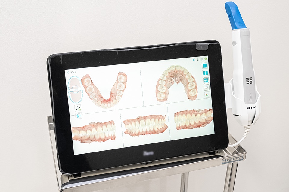 さらにマウスピース矯正では、どのように歯並びを整えていくのか事前にシミュレーションを見ていただくことが可能です。そのためのデータ取得は口腔内スキャナーの撮影で行えるため、印象材を噛んで型取りをする不快感もございません。