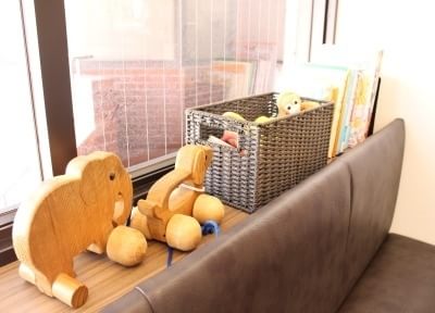 診療チェアの横にはお子様用の椅子と机を準備しています。