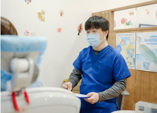 お子さまの場合ですと、親御さまへの説明を細かく行い、治療後のブラッシング方法までお伝えします。また、キッズノートというものをお渡しして、治療の経過をお伝えしております。後から確認することが可能なため、例えば付き添って来ていないお父さまが、どんな治療をしていたのかが分かる形をとっています。
