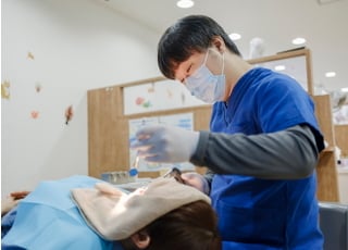 当院では、お子さまを預けていただいても大丈夫なように、専任のスタッフが勤務しております。お子さまが一人で待っていることがないので、親御さまも治療に専念していただけることが可能となっております。もし、どうしも親御さまから離れられないといったお子さまの場合でも、ご一緒に診療室へ入っていただくことが可能です。