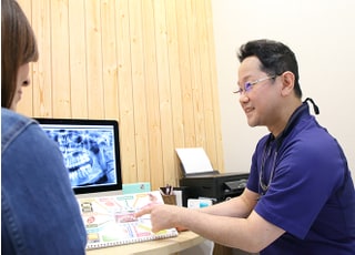 歯に関する知識がなくて、痛みを感じたから来た患者さまに向けても、できる限り分かりやすく、専門用語もかみ砕いた言葉で説明を行います。どのような内容の治療が、何回程度の予定なのかも、しっかりとお伝え致します。患者さまの疑問などを解消するカウンセリングや、痛みを解消するために予約時間を少しオーバーしてでも、患者さまにご納得いただける治療を行なっています。