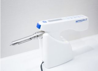 麻酔薬は注入の勢いにムラがあると、圧力で痛みを感じてしまいます。針が細いと、注入する力がより必要になり、このムラが出やすくなります。そこで、一定の量で薬を注入できる電動麻酔も導入しています。