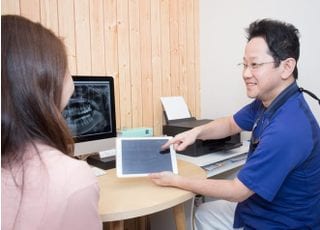 お口の中はご自身では見えにくい場所なだけに、患者さまはお口の症状に不安を抱えて来院されていると思います。そのような不安な気持ちに配慮して、当院では患者さまへの説明を大切にしています。