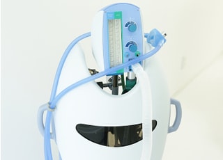 笑気麻酔とは、鎮静作用のあるガスで不安や恐怖心を軽減させ、気持ちを落ち着かせる方法です。笑気吸入装置で低濃度笑気と酸素を混合し、専用の鼻マスクを用いて吸入します。