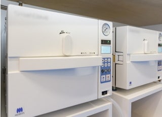 器具に関しては超音波洗浄機、高圧蒸気滅菌器を導入して洗浄、滅菌を行っており、衛生的な状態のものを使用しています。超音波洗浄機を使うことで、手洗いでは落としにくい付着物を内部、細部まで取り除くことができ、高圧蒸気滅菌器を利用し、器具についているウイルスや細菌を死滅させています。これらの滅菌設備は大学病院と同等レベルのものであり、患者さまごとに器具を滅菌することを徹底しています。