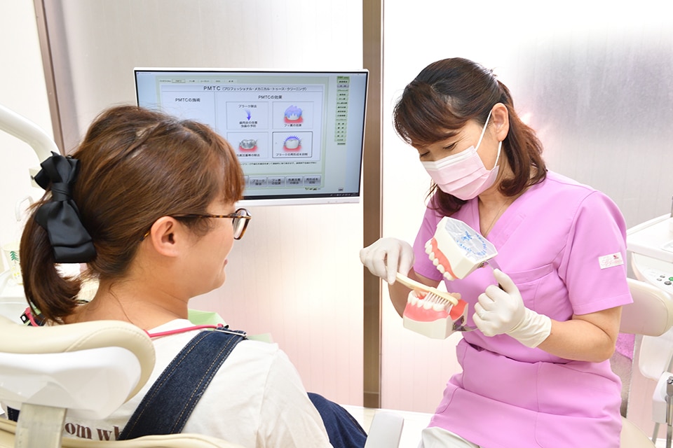 当院の予防歯科では、患者さまの予防意識向上を目標にしています。定期的に通っていただき、メンテナンスやアドバイスを受けることで、「歯の大切さ」「予防の大切さ」を知っていただければ幸いです。