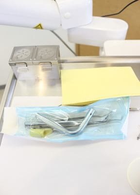 器具は使用する直前まで滅菌パックされた状態で保管しております。