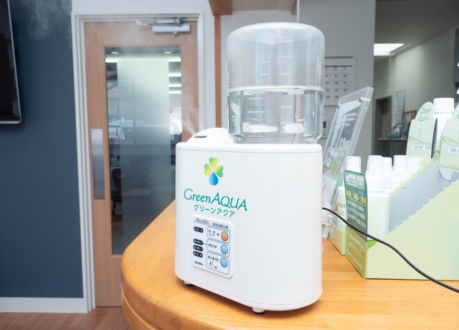 また、ドアノブや待合室を消毒液で清拭し、空気清浄機と定期的な換気をおこない新型コロナウイルスの感染防止対策に努めております。