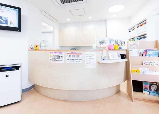 レセプションカウンターです。保険証や診察券をお持ちください