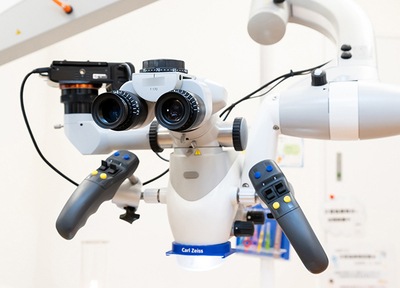 口内の様子をより分かりやすくお伝えするために、当クリニックではマイクロスコープで撮影した動画を使用しています。マイクロスコープとは、肉眼の数十倍も視野を拡大して映し出して、精密な診査や治療を行うための歯科用顕微鏡です。拡大した様子をモニターに写し出せるだけでなく、静止画や動画の撮影も行えます。