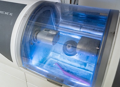 主にセラミック治療システムによるつめ物・かぶせ物を作製しており、早くて当日中に技工物のセットが可能です。お口のデータ取りに口腔内スキャナーを使用しているため、型取りで気分が悪くなることはほぼありません。最終的な噛み合わせの調節も、歯科医師ではなく歯科技工士がマイクロスコープを覗きながら精密に行い、患者さまにぴったりと合うつめ物・かぶせ物の作製に努めています。