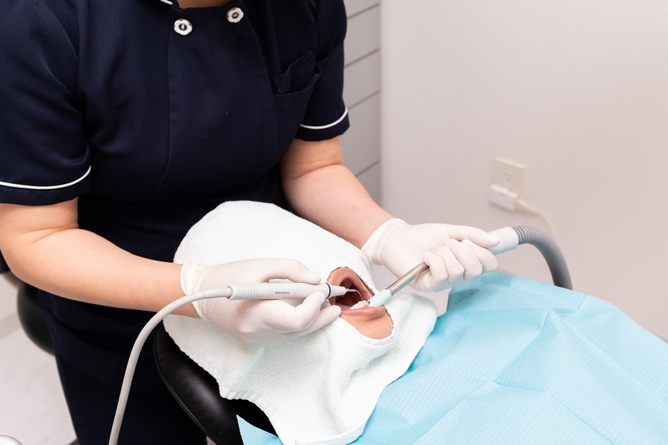 特に問題がなければ、お口の中の状態を確認しながら専用の器具を使用してクリーニングを行います。
