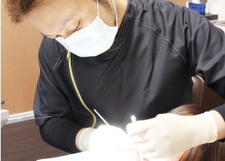 治療においては、ほぼ全員に表面麻酔と電動麻酔を使い、治療時の痛みの軽減を図ります。大人の方への麻酔はケースによって違いはありますが、麻酔の方法の工夫などにより、なるべく痛みを抑えた治療を心がけています。患者さまの目線に立ち、「怖い」「痛い」という経験をさせないよう、細心の注意をはらいながら治療にあたっています。