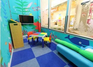 当院は、お子さまが落ち着けるようなキッズスペースづくりにも力を注いでいます。海をイメージした外観で、院内の雰囲気が明るくし、お子さまの緊張感をほぐすきっかけにもなっていただければと思います。