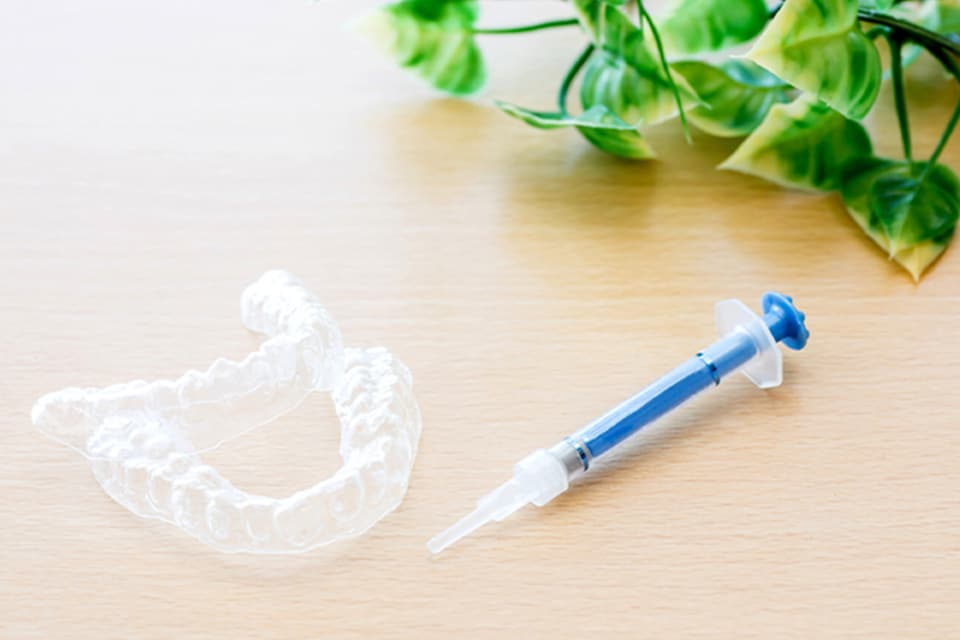 当院で作製したマウスピースに薬剤を入れ、毎日1時間から2時間ほど歯に装着していただきます。白さを実感するまで時間を要しますが、色の後戻りがしにくいのが特徴です。