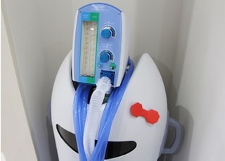 麻酔注入時の痛みを少なくするため、注射器はコンピューターで圧を制御できる電動のものを採用しました。不安感が強い方には、リラックスさせる働きのあるガスを使った笑気麻酔も可能ですので、お申し付けください。