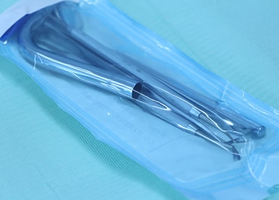 滅菌後治療に用いる器具は清潔を保つためパック詰めしています