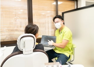 説明の際には、ご理解いただきやすいようにタブレットでレントゲン画像をお見せして、一緒にお口の状態を確認しながらお話ししています。患者さまに口内環境を知っていただくことで、治療や予防への意識が高まると考えています。また、検査資料もお渡ししていますので、ご都合やお考えに合わせて治療を検討することができます。